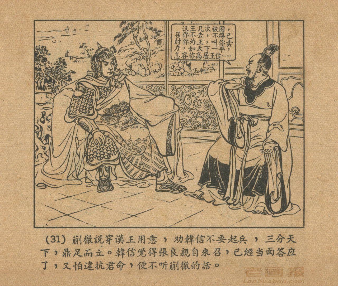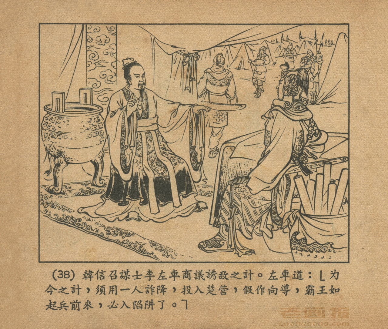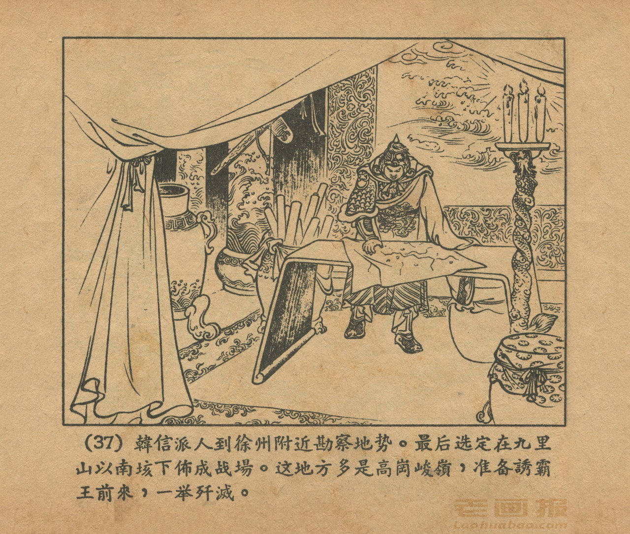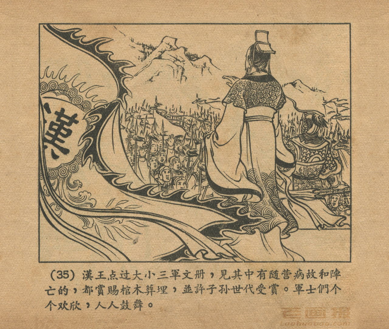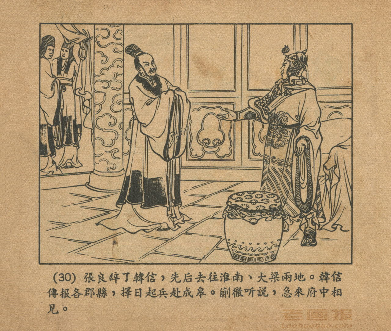 连环画《乌江自刎》 1958老版楚汉相争 第3页 编文:林林 绘画:李成勋 戴仁 上海人民美术出版社 1958 此连环画来源于连友“一步”藏书扫描,同意老画报网站免费发布。您可以自由分享、引用,但必须署名原作者,并不得用于商业目的。 1 2 3 4 5 6 7 8 9 目录 |<< < 上一页 下一页 > >>| 乌江自刎 共9页 < 上一页下一页 >