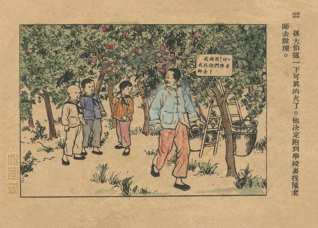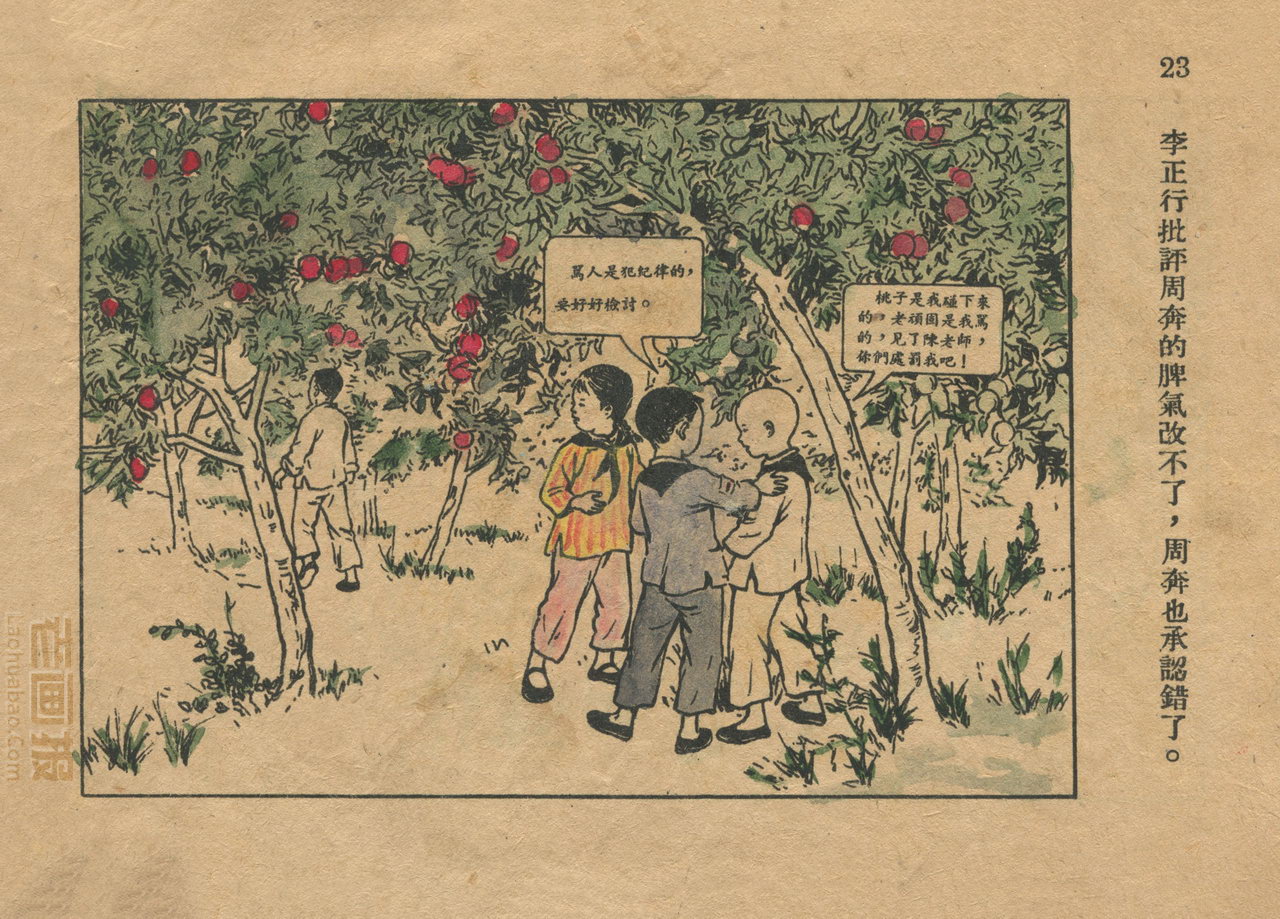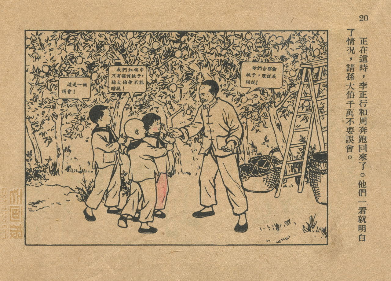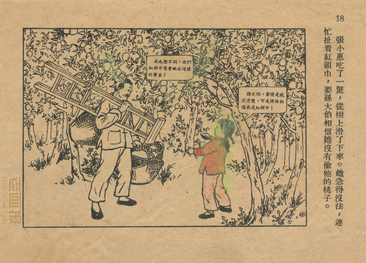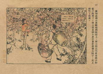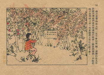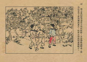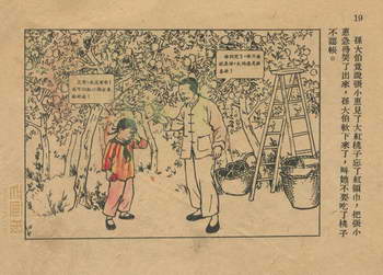 连环画《桃子熟了》 1953年老版残本 第2页 编文:徐光玉 绘画:丁深 华东人民美术出版社 1953 此连环画来源于连友“一步”藏书扫描,同意老画报网站免费发布。您可以自由分享、引用,但必须署名原作者,并不得用于商业目的。 1 2 3 目录 |<< < 上一页 下一页 > >>| 桃子熟了 共3页 < 上一页下一页 >
