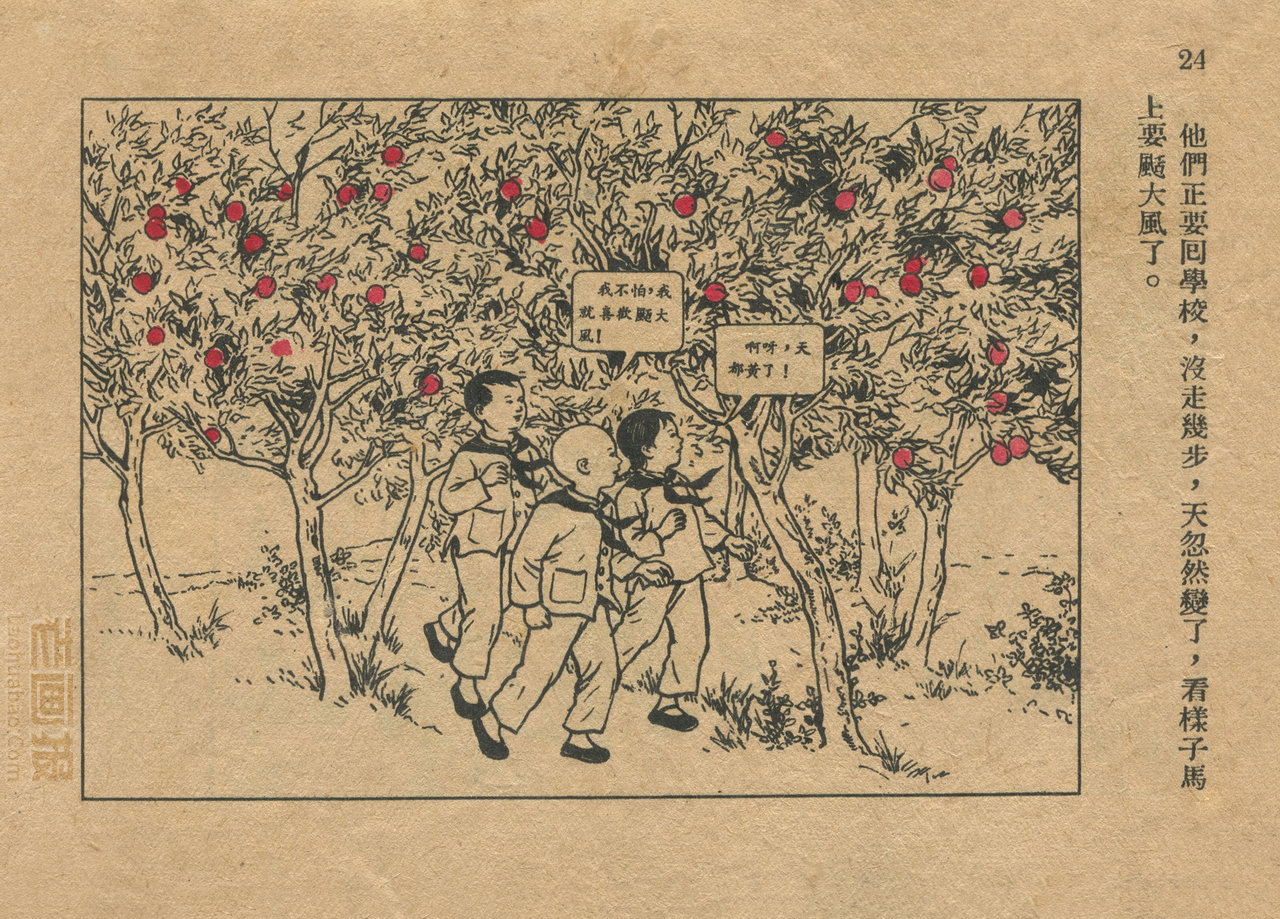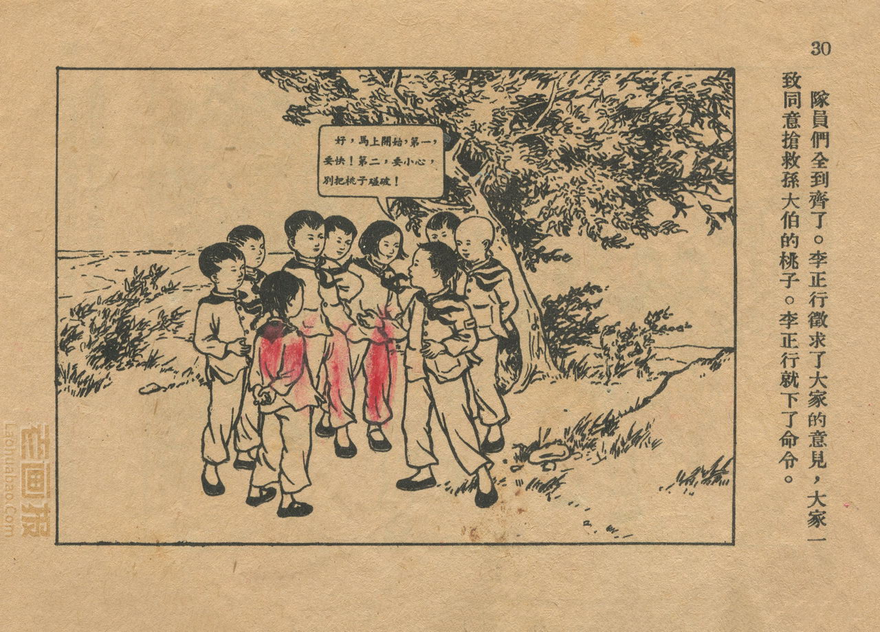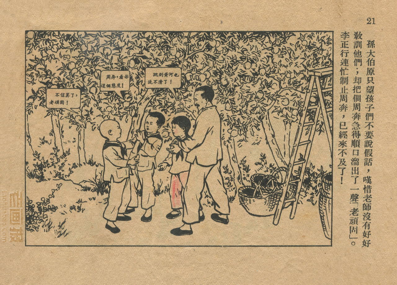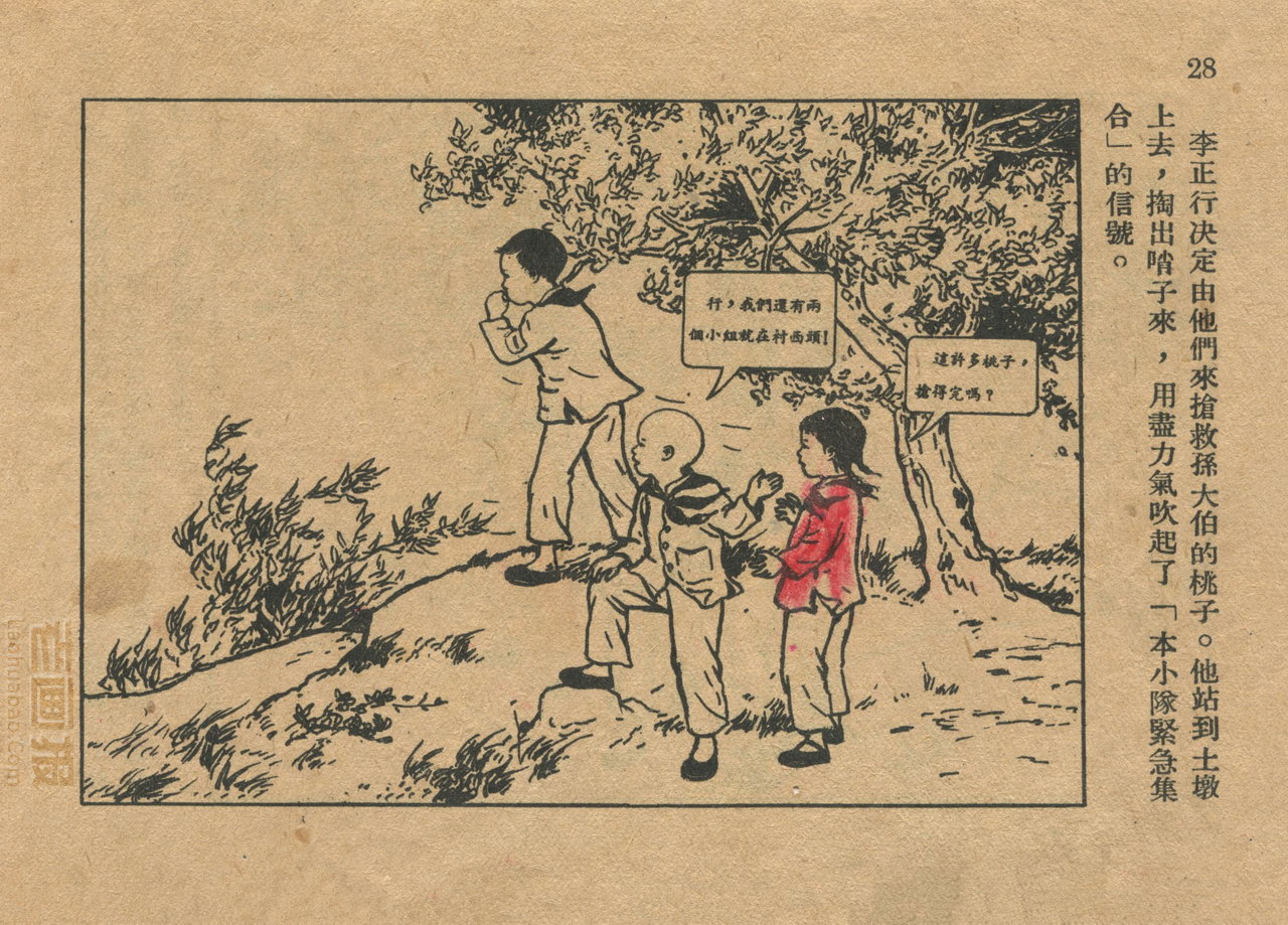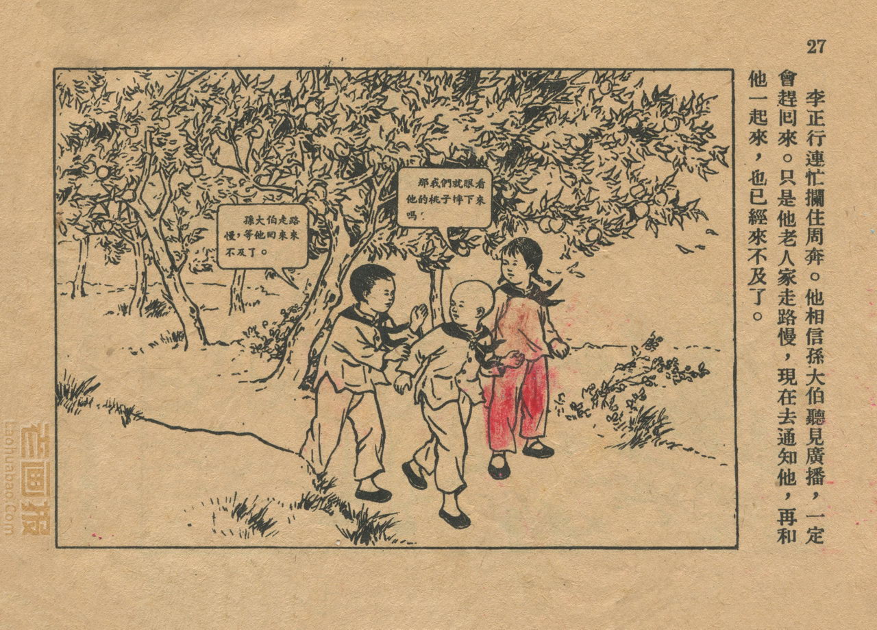 连环画《桃子熟了》 1953年老版残本 第2页 编文:徐光玉 绘画:丁深 华东人民美术出版社 1953 此连环画来源于连友“一步”藏书扫描,同意老画报网站免费发布。您可以自由分享、引用,但必须署名原作者,并不得用于商业目的。 1 2 3 目录 |<< < 上一页 下一页 > >>| 桃子熟了 共3页 < 上一页下一页 >