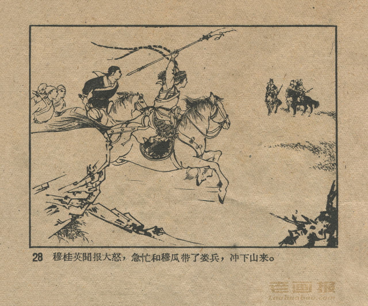 连环画《穆桂英》 1959年老版 第2页 编文:袁定基 绘画:陈惠冠 辽宁美术出版社 1960 此连环画来源于连友“一步”藏书扫描,同意老画报网站免费发布。您可以自由分享、引用,但必须署名原作者,并不得用于商业目的。 1 2 3 4 5 目录 |<< < 上一页 下一页 > >>| 穆桂英 共5页 < 上一页下一页 >