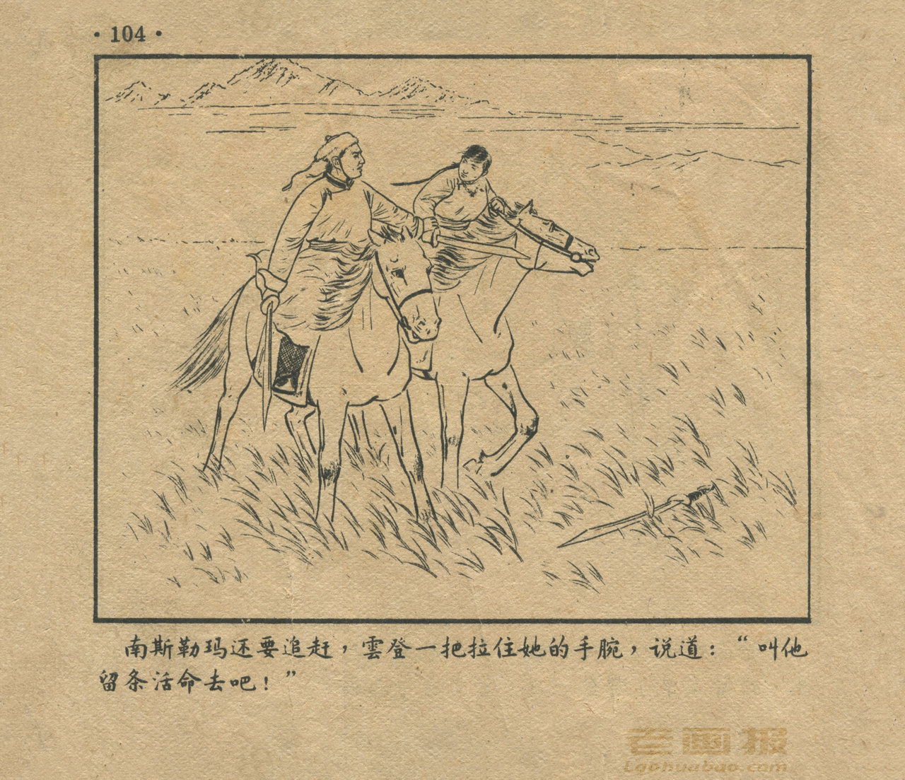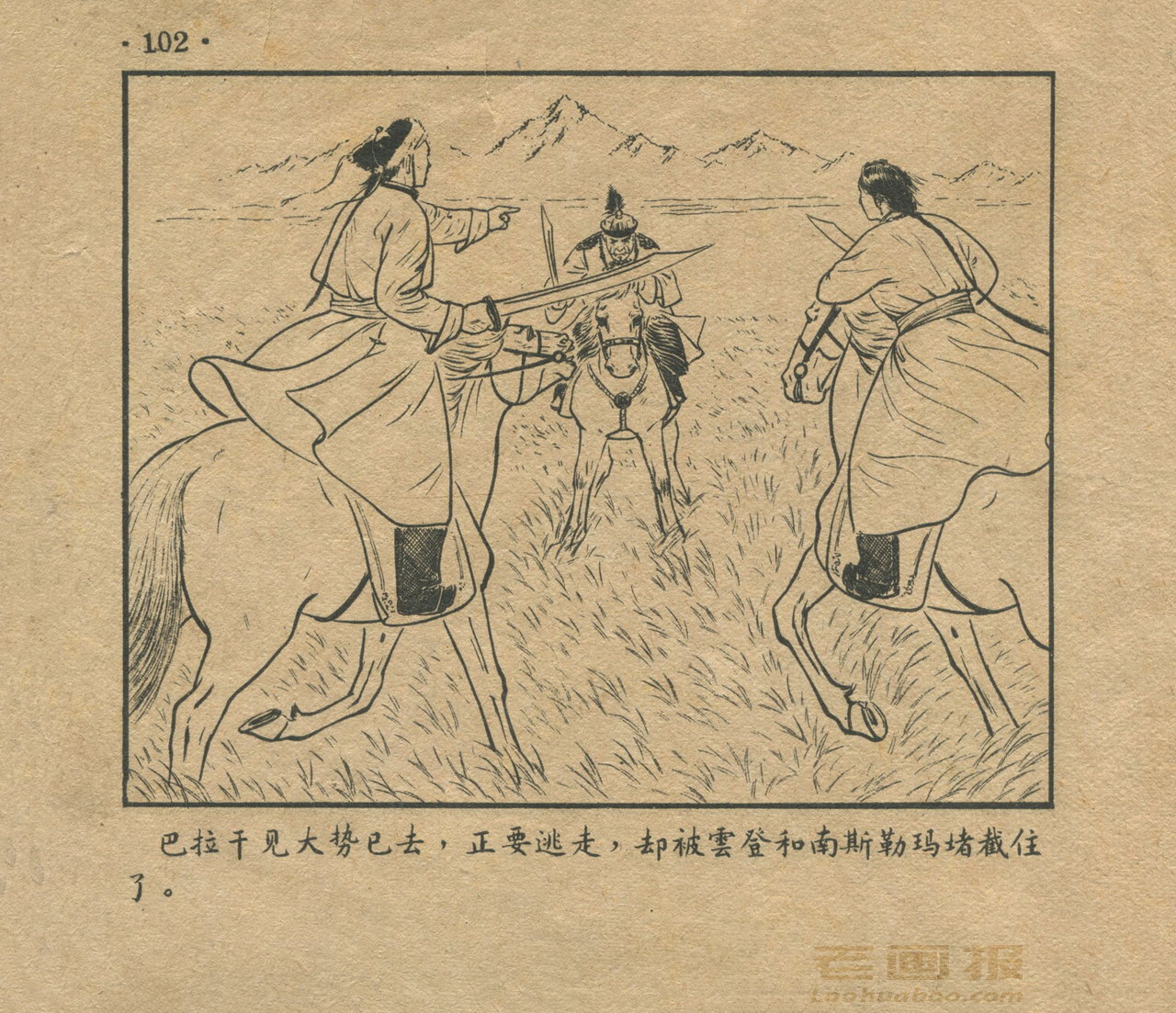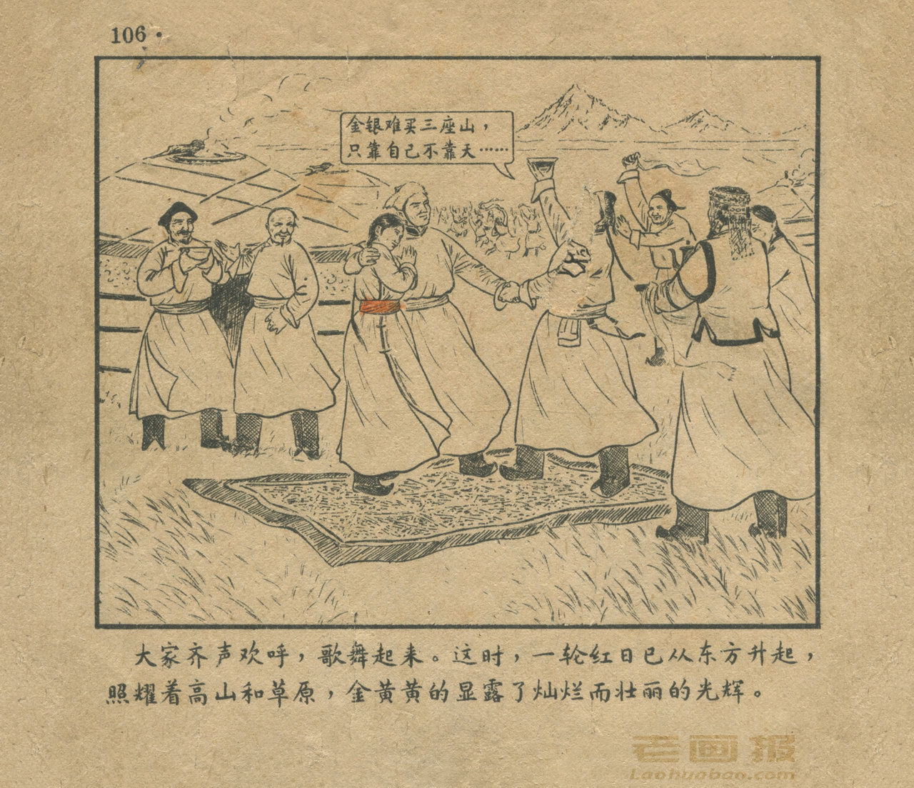 连环画《三座山》 1956年老版 缺封底 第7页 编文:金戈 绘画:驼亚 人民美术出版社 1956 此连环画来源于连友“一步”藏书扫描,同意老画报网站免费发布。您可以自由分享、引用,但必须署名原作者,并不得用于商业目的。 1 2 3 4 5 6 7 目录 |<< < 上一页 下一页 > >>| 三座山 共7页 < 上一页下一页 >