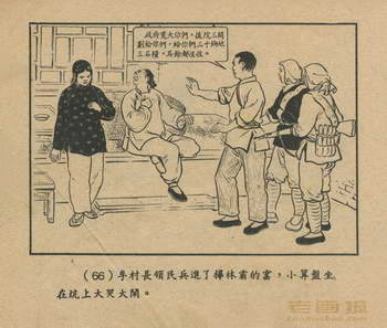 “呂梁英雄傳”是一部描写老解放区人民斗爭的好小說,作者馬烽、西戎,以晋绥边区呂梁山农民的对敌斗爭为主,生动地写出了惨無人道的日寇,丧心病狂的汉奸,陰險卑鄙的反动地主和頑固惡霸的罪惡行为;也写出了英勇智慧的农民,如何在共产觉的領导下組織起来,战胜了敌人。我們將这部小說改編成連环圖画,一共分为六本。这六本書,文字能歌能唱,每本都有一个中心的故事,可以集中一起閱讀,也可以分开来看。我們謹將这六本書献給亲爱的讀者。