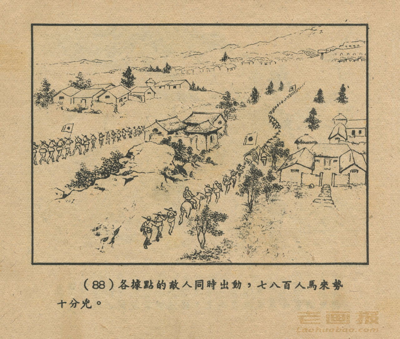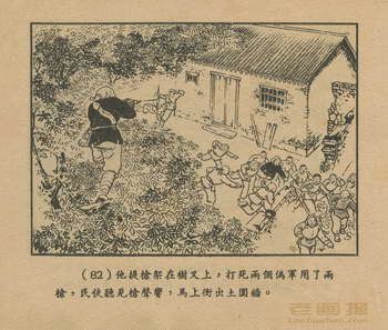 “呂梁英雄傳”是一部描写老解放区人民斗爭的好小說,作者馬烽、西戎,以晋绥边区呂梁山农民的对敌斗爭为主,生动地写出了惨無人道的日寇,丧心病狂的汉奸,陰險卑鄙的反动地主和頑固惡霸的罪惡行为;也写出了英勇智慧的农民,如何在共产觉的領导下組織起来,战胜了敌人。我們將这部小說改編成連环圖画,一共分为六本。这六本書,文字能歌能唱,每本都有一个中心的故事,可以集中一起閱讀,也可以分开来看。我們謹將这六本書献給亲爱的讀者。