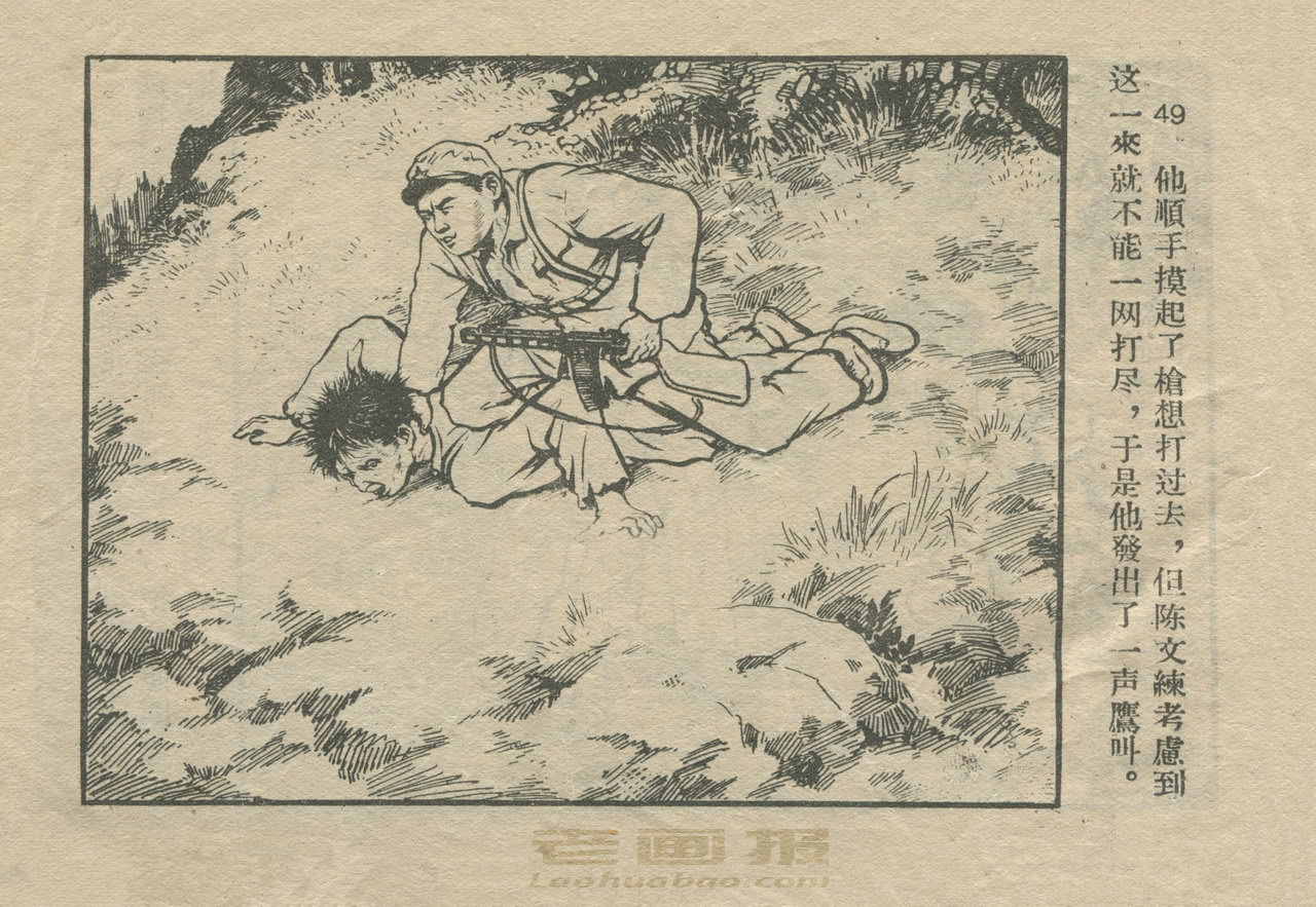 连环画《国境线上的鹰》 1957老版 第5页 原著:蓝芒 编文:杜南 绘画:盛树春 江西人民出版社 1957 此连环画来源于连友“一步”藏书扫描,同意老画报网站免费发布不做商用。您可以自由分享、引用,但必须署名原作者,并不得用于商业目的。 1 2 3 4 5 目录 |<< < 上一页 下一页 > >>| 国境线上的鹰 共5页 < 上一页下一页 >