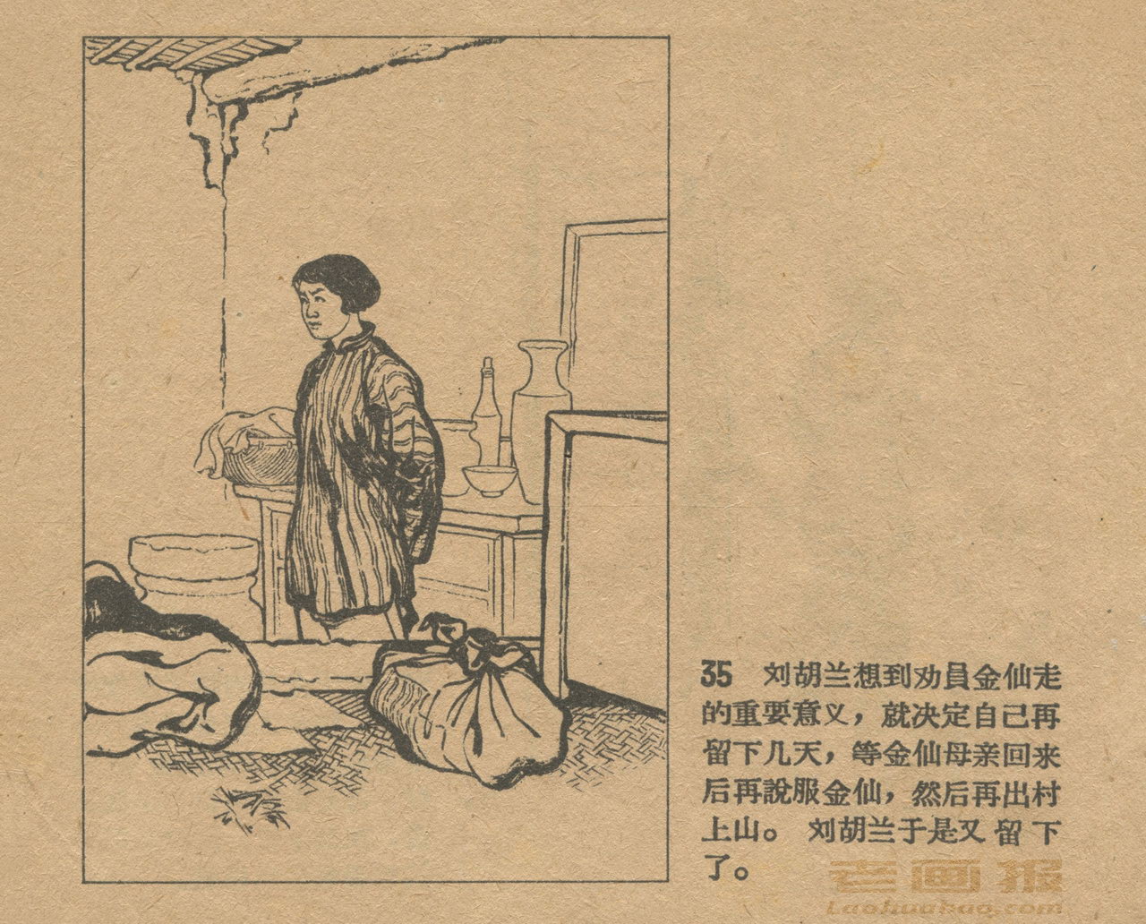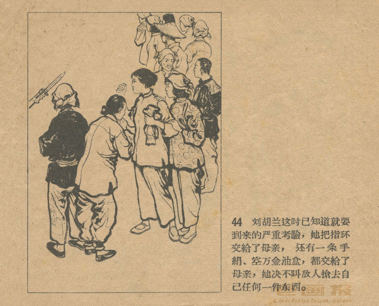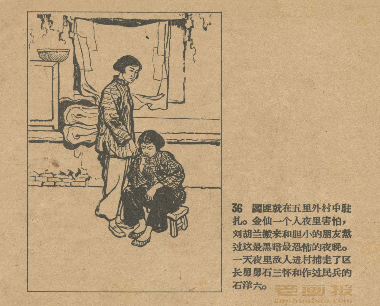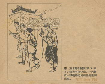 连环画《刘胡兰》 1958老版 第3页 根据梁星编写“刘胡兰小传” 绘画:姬寿彭 辽宁画报社 1958 此连环画来源于连友“一步”藏书扫描,同意老画报网站免费发布。您可以自由分享、引用,但必须署名原作者,并不得用于商业目的。 1 2 3 4 目录 |<< < 上一页 下一页 > >>| 刘胡兰 共4页 < 上一页下一页 >