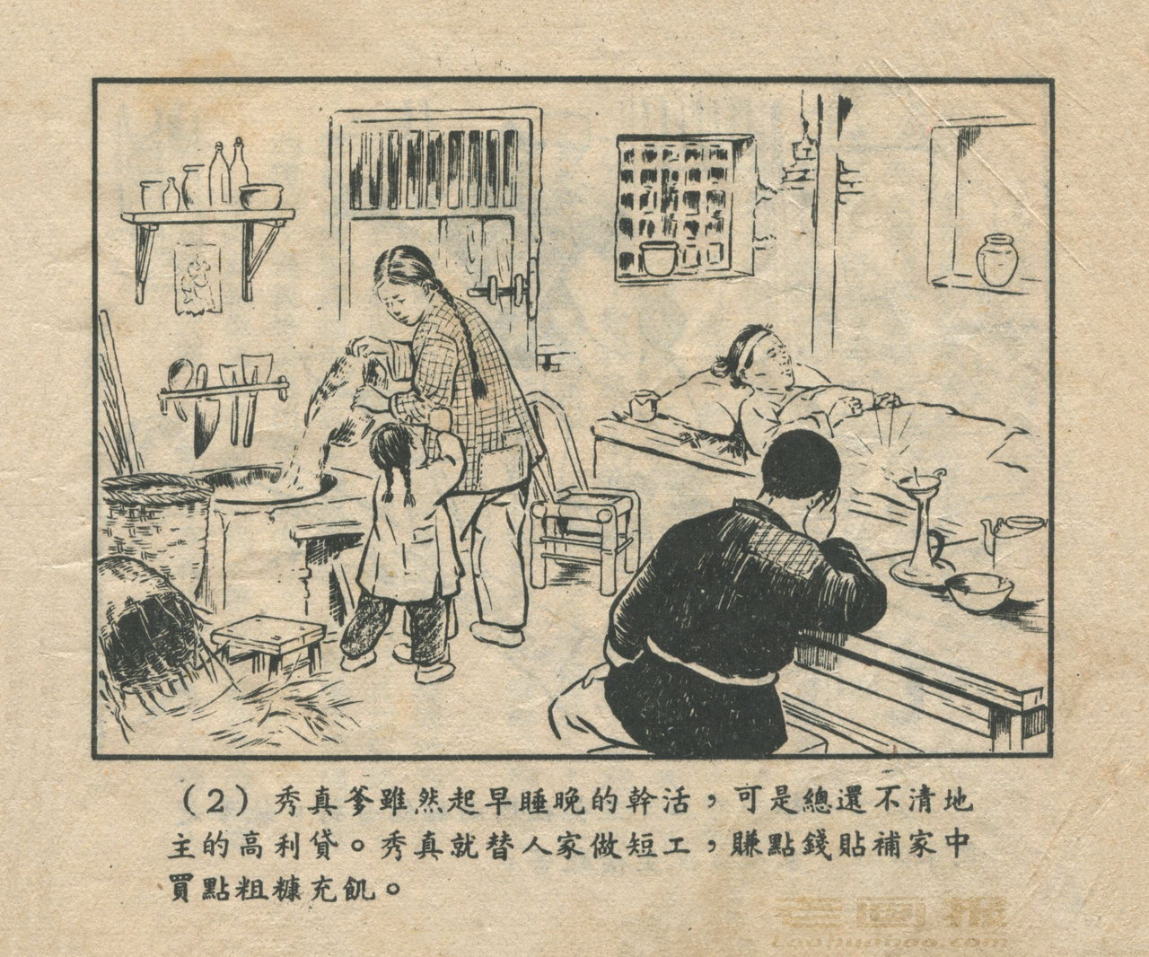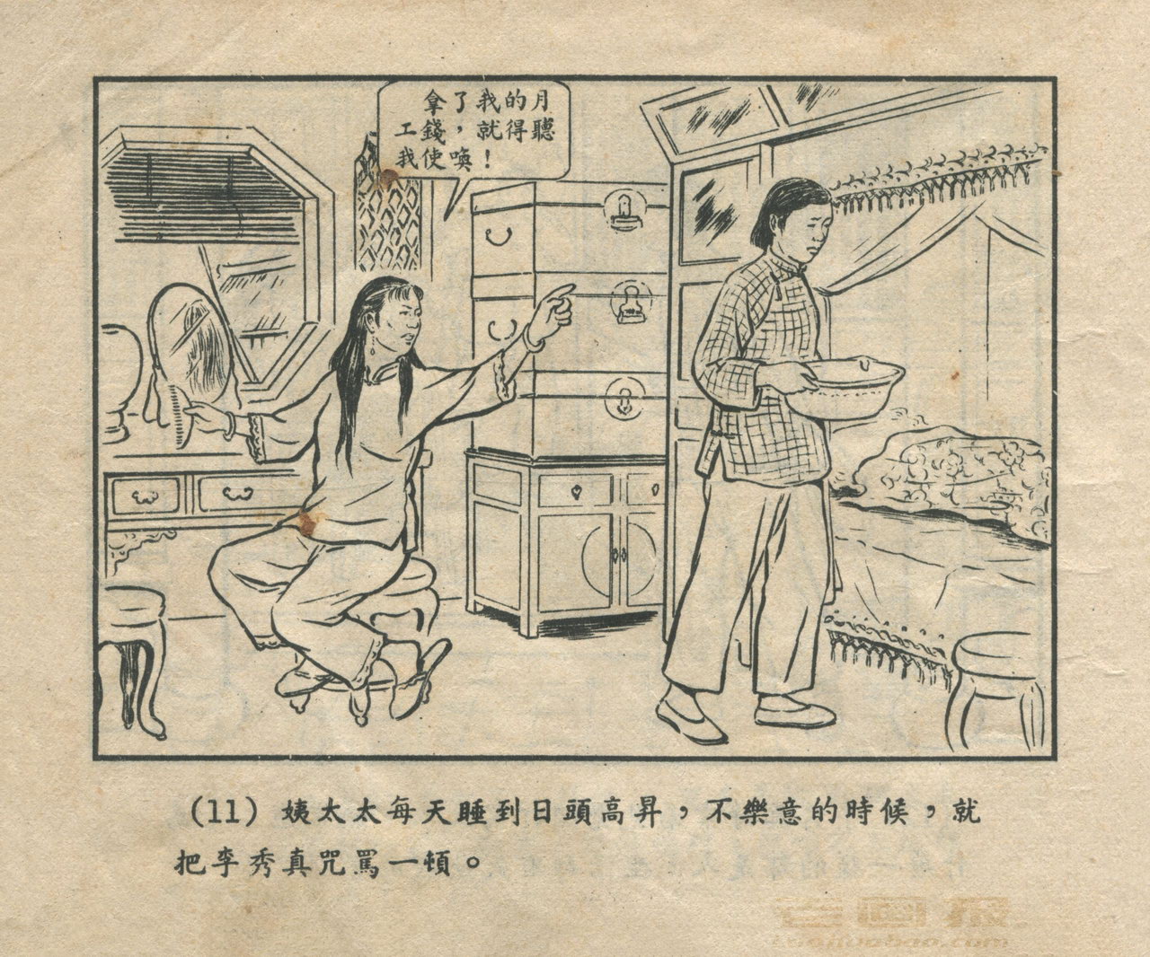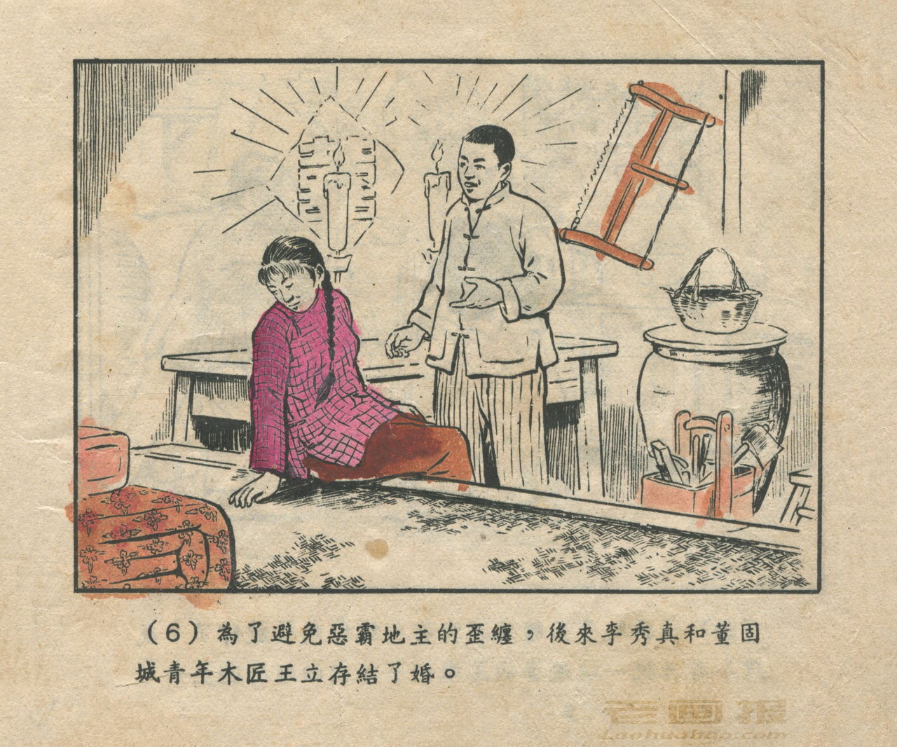 连环画《李秀真》 1953老版 绘画:汪健 凌涛 陈云昌 王一菲 新美术出版社 1953 此连环画来源于连友“一步”藏书扫描,同意老画报网站免费发布。您可以自由分享、引用,但必须署名原作者,并不得用于商业目的。 1 2 3 4 5 6 目录 |<< < 上一页 下一页 > >>| 李秀真 共6页 < 上一页下一页 >
