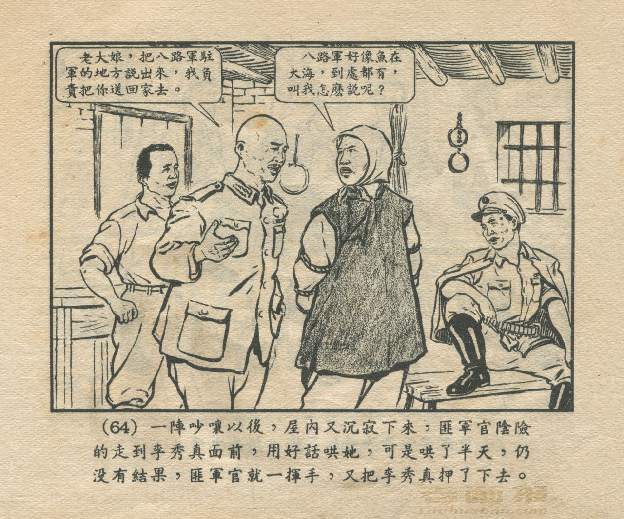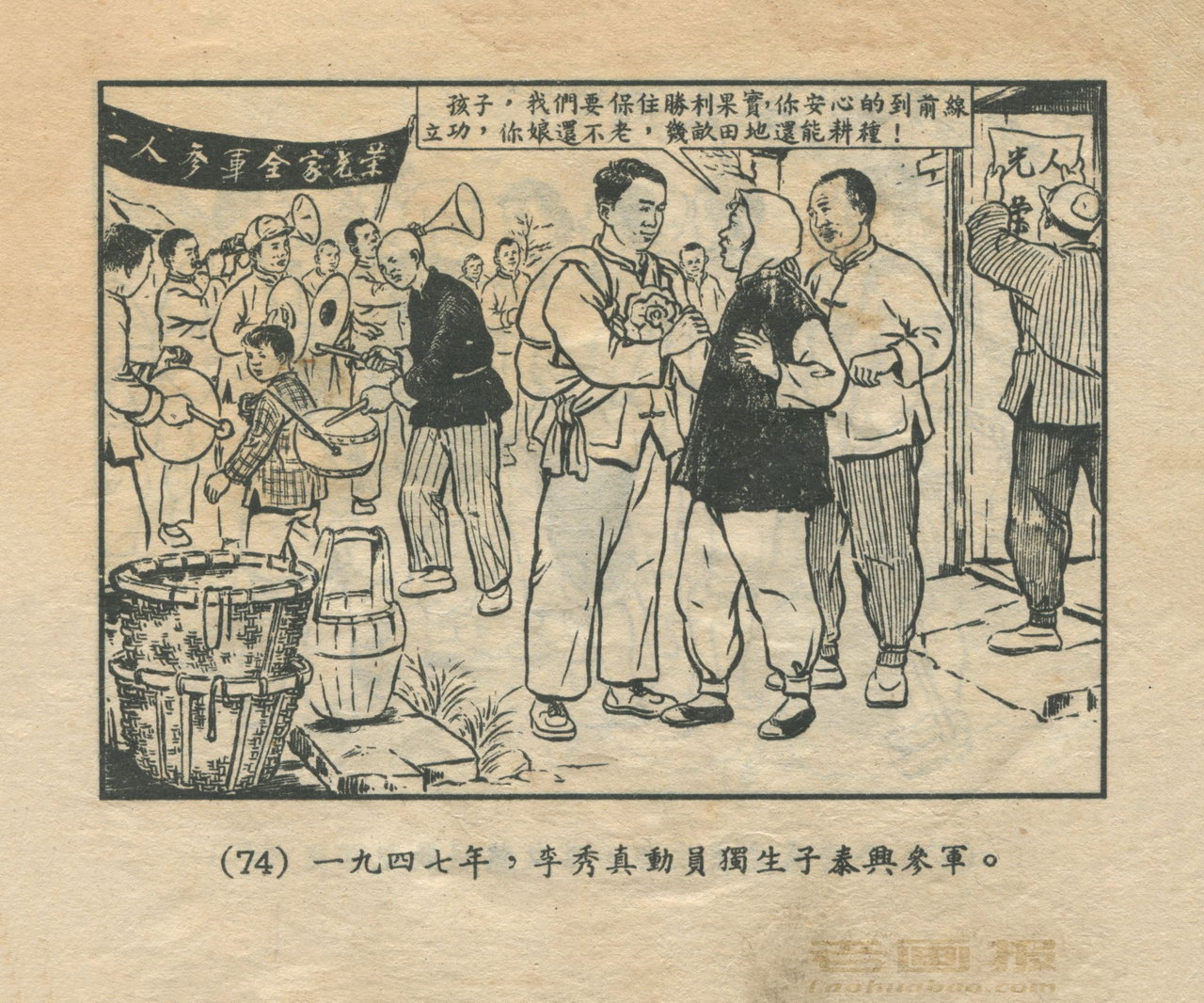 连环画《李秀真》 1953老版 第5页 绘画:汪健 凌涛 陈云昌 王一菲 新美术出版社 1953 此连环画来源于连友“一步”藏书扫描,同意老画报网站免费发布。您可以自由分享、引用,但必须署名原作者,并不得用于商业目的。 1 2 3 4 5 6 目录 |<< < 上一页 下一页 > >>| 李秀真 共6页 < 上一页下一页 >