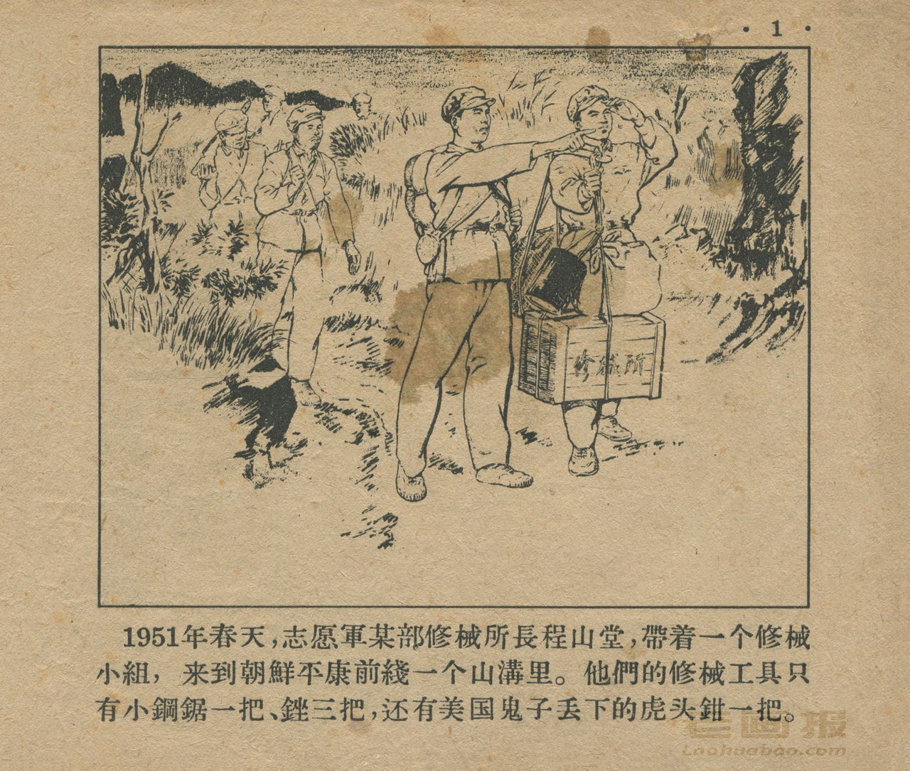 连环画《战地兵工厂厂长》 1958年老版 编文:唐剑 绘画:陈云华 人民美术出版社 1958 此连环画来源于连友“一步”藏书扫描,同意老画报网站免费发布。您可以自由分享、引用,但必须署名原作者,并不得用于商业目的。 1 2 3 目录 |<< < 上一页 下一页 > >>| 战地兵工厂厂长 共3页 < 上一页下一页 >